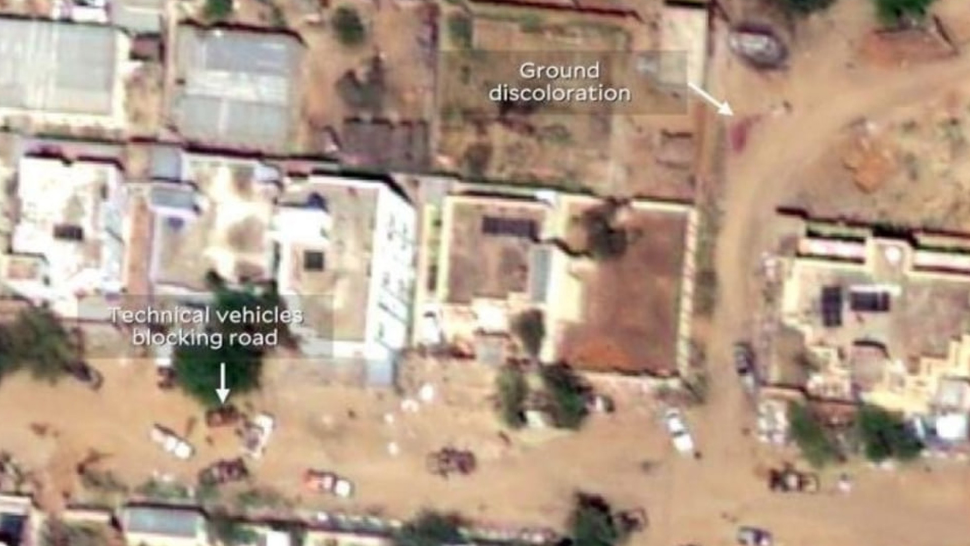 وأشار التقرير إلى أن صور الأقمار الصناعية تظهر أعداداً كبيرة من الجثث ملقاة بالقرب من مستشفى الأطفال ومنطقة الساتر الترابي، وهو ما يشير إلى أن القتل المنهجي لا يزال مستمراً في محيط الفاشر. هذا، وقد أظهرت الصور التي التقطت يومي الاثنين والثلاثاء صفوفاً من الأجسام الداكنة التي تمتد من مبنى المستشفى إلى بوابة المنشأة، ما يعزز الرواية حول وجود مجزرة جماعية في المدينة.