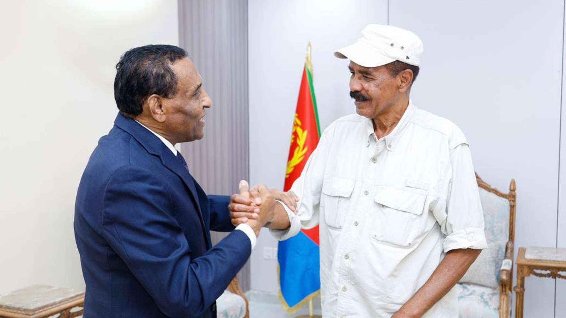 وقد وصل الرئيس أفورقي إلى بورتسودان في زيارة رسمية، حيث جرت له مراسم استقبال رسمية لدى وصوله إلى القصر. خلال الجلسة، تم استعراض تطورات الأوضاع في السودان ومناقشة القضايا الإقليمية ذات الاهتمام المشترك، بما في ذلك الجهود المبذولة لتحقيق الاستقرار والسلام في المنطقة.